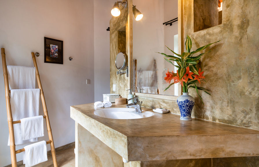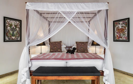 We have two separate cabanas, each with split king beds. The Pool View has a small third bed for a child with enclosed garden and outdoor seating. The Paddy View is suitable for a couple with a terrace and sunbathing area.