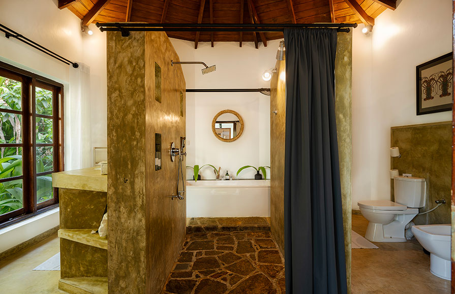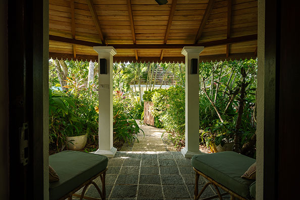 We have two separate cabanas, each with split king beds. The Pool View has a small third bed for a child with enclosed garden and outdoor seating. The Paddy View is suitable for a couple with a terrace and sunbathing area.