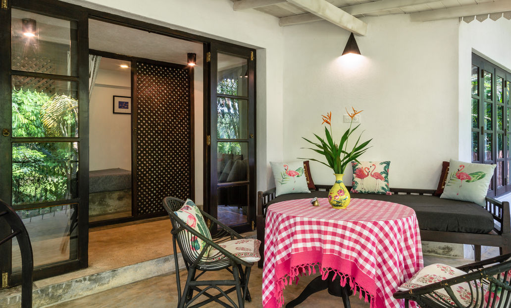 We have two separate cabanas, each with split king beds. The Pool View has a small third bed for a child with enclosed garden and outdoor seating. The Paddy View is suitable for a couple with a terrace and sunbathing area.