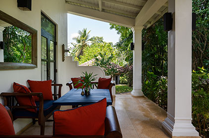 Our third room in the house is a large double which also contains an additional child’s bed/day bed and has an-suite bathroom with walk in shower. The private veranda looks out over the lush garden at the back of the house and allows for easy wheelchair access.